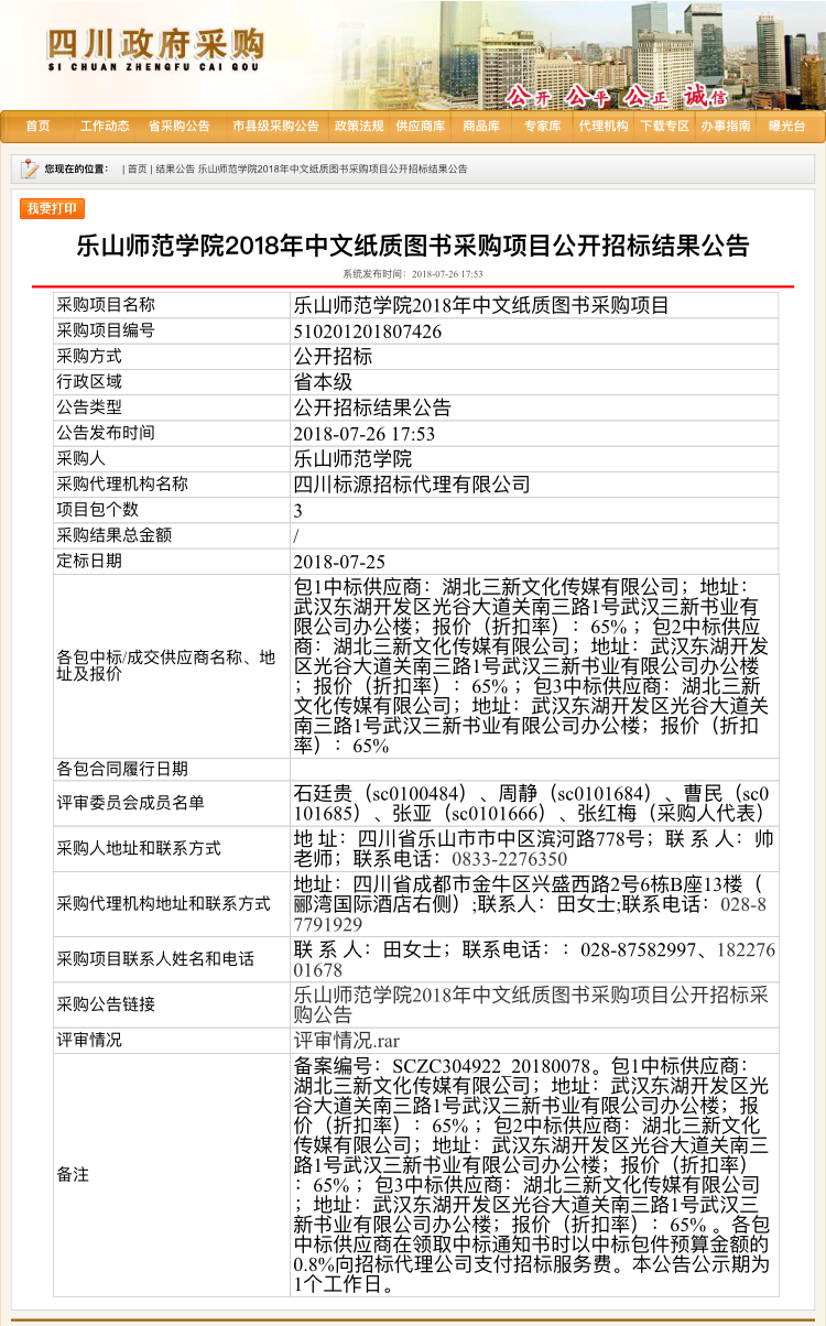 该公开招标结果公告四川政府采购网发布网址:http://202.61.88.152:9002/view/staticpags/jggg/2018-07-26/ad67798bcc194dcea93fc42be2c0c158.html
