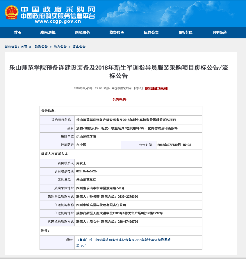 上一条:乐山师源教育投资有限公司2018年公寓床上用品供应商资格入围采购项目结果公告 下一条:乐山师范学院2018年中文纸质图书采购项目公开招标结果公告