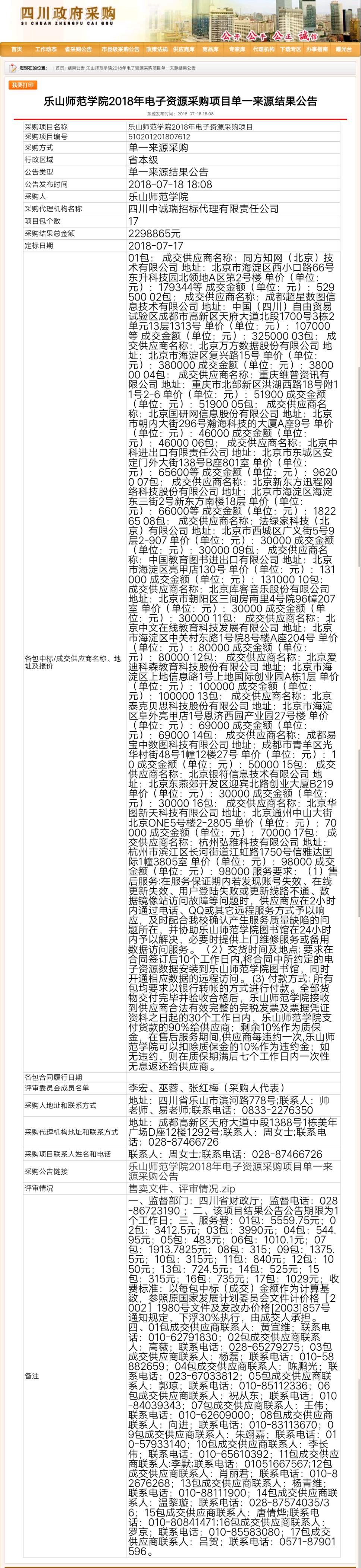 该采购结果公告于2018年7月18日在四川政府采购网发布,发布网址: