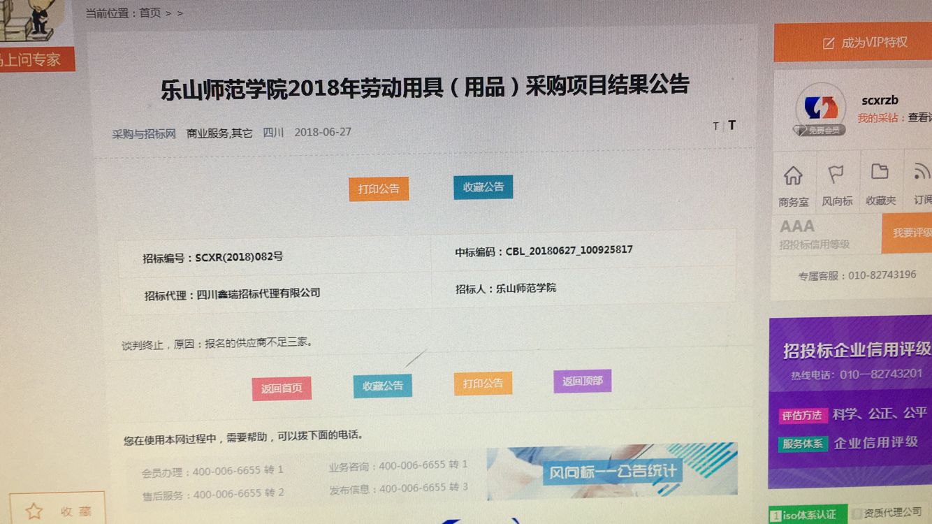 乐山师范学院2018年劳动用具(用品)采购项目结果公告