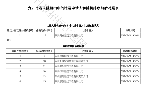 于2017年7月21日在乐山市公共资源交易中心开标厅进行比选,到达现场有35家。乐山市市中区发改局高久永、张弓进行场监督,招标中心蓝军作为比选人代表参加了比选会。于2017年07月21日14时58分随机抽取完成,中标单位为:四川翔业建筑工程有限公司,中标价:67.19万元 。