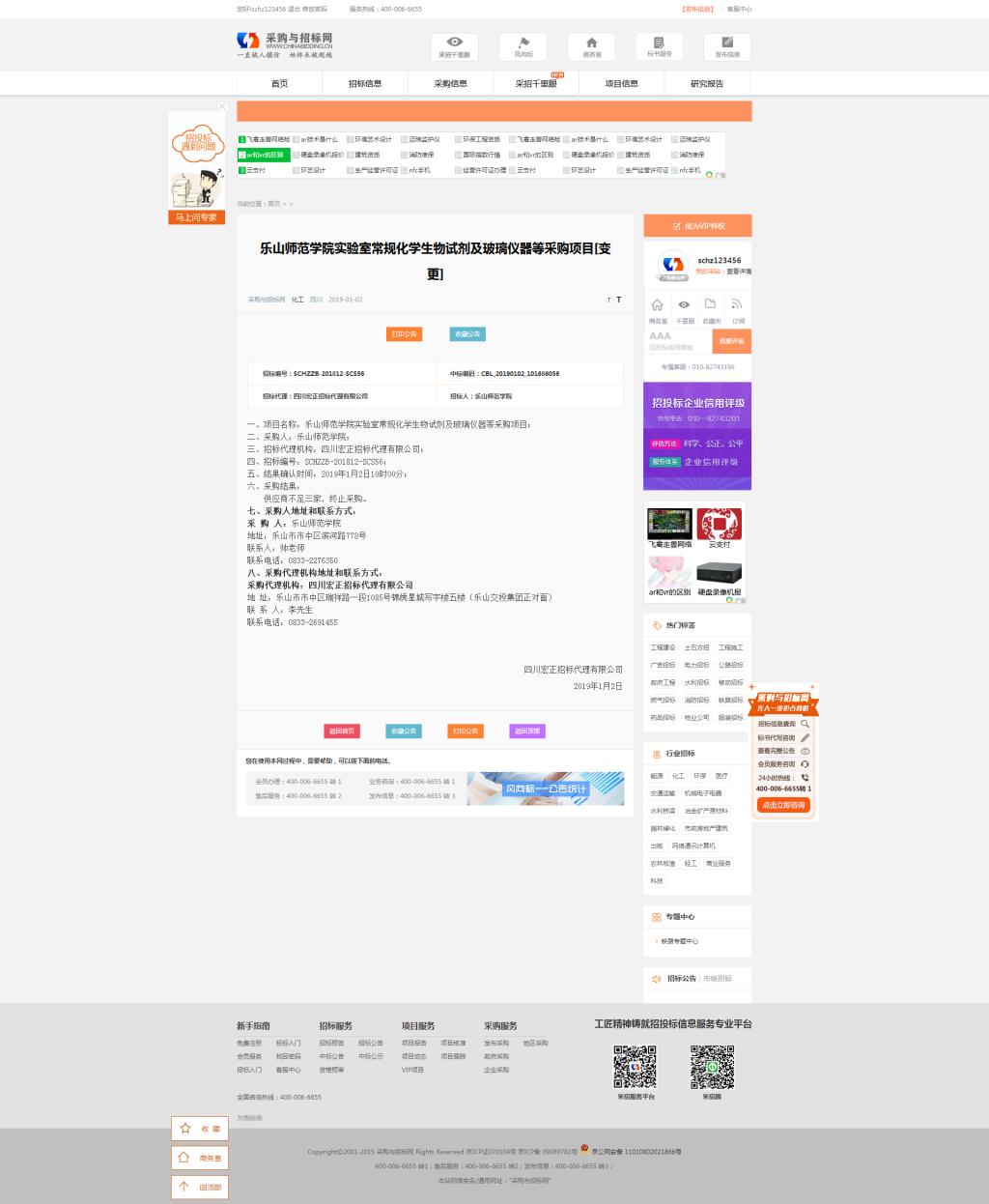 乐山师范学院实验室常规化学生物试剂及玻璃仪器等采购项目【变更】采购结果公告