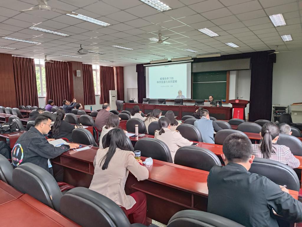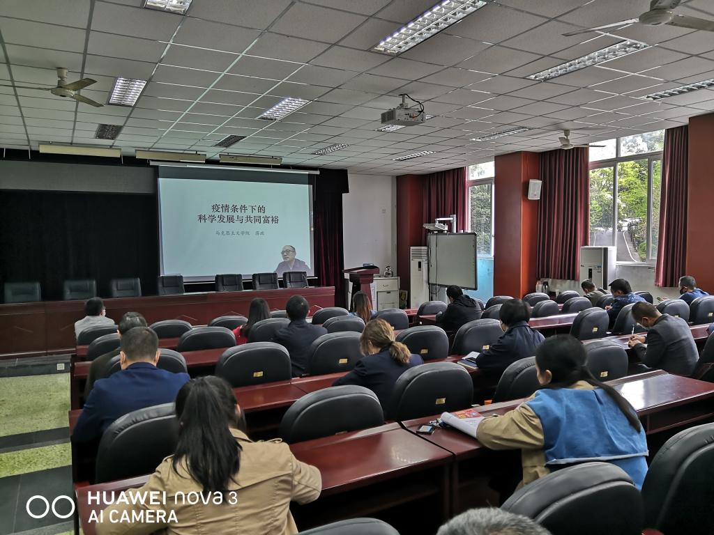 学校马克思主义学院副院长蒋政博士疫情条件下的科学发展与共同富裕为题,介绍了过去一年,我国在经济发展、科技创新、生态文明建设、人民生活水平、疫情防控等方面取得的成绩,对发展不平衡不充分的矛盾、科技领域关键核心技术卡脖子的现象进行了分析解读。最后,他同大家一起探讨了共同富裕,企业家精神,三次分配,创新发展,促进消费、投资和生产,进出口需求等方面的话题。