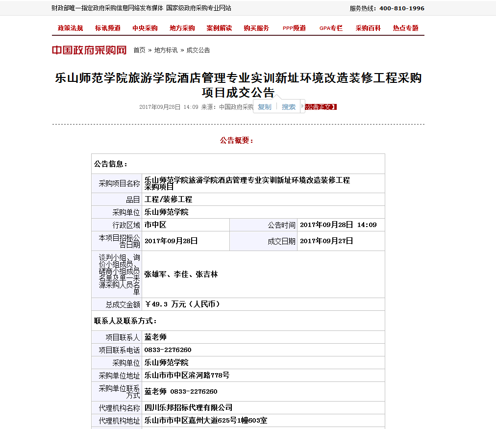 中国政府采购网网页:http://www.ccgp.gov.cn/cggg/dfgg/cjgg/201709/t20170928_8921574.htm