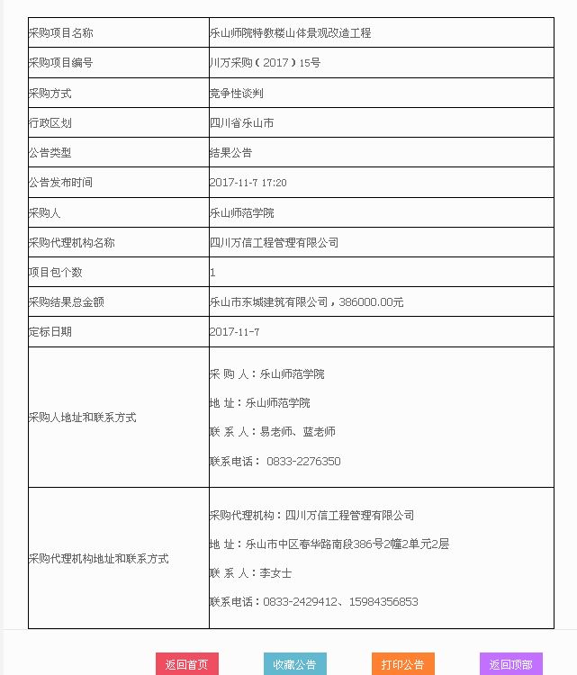 上一条:“乐山师范学院音乐学院门窗维修改造、教科学院训练室改造”采购结果公示 下一条:乐山师范学院计算机科学学院工作站机房综合布线与实训台设备采购项目成交公告